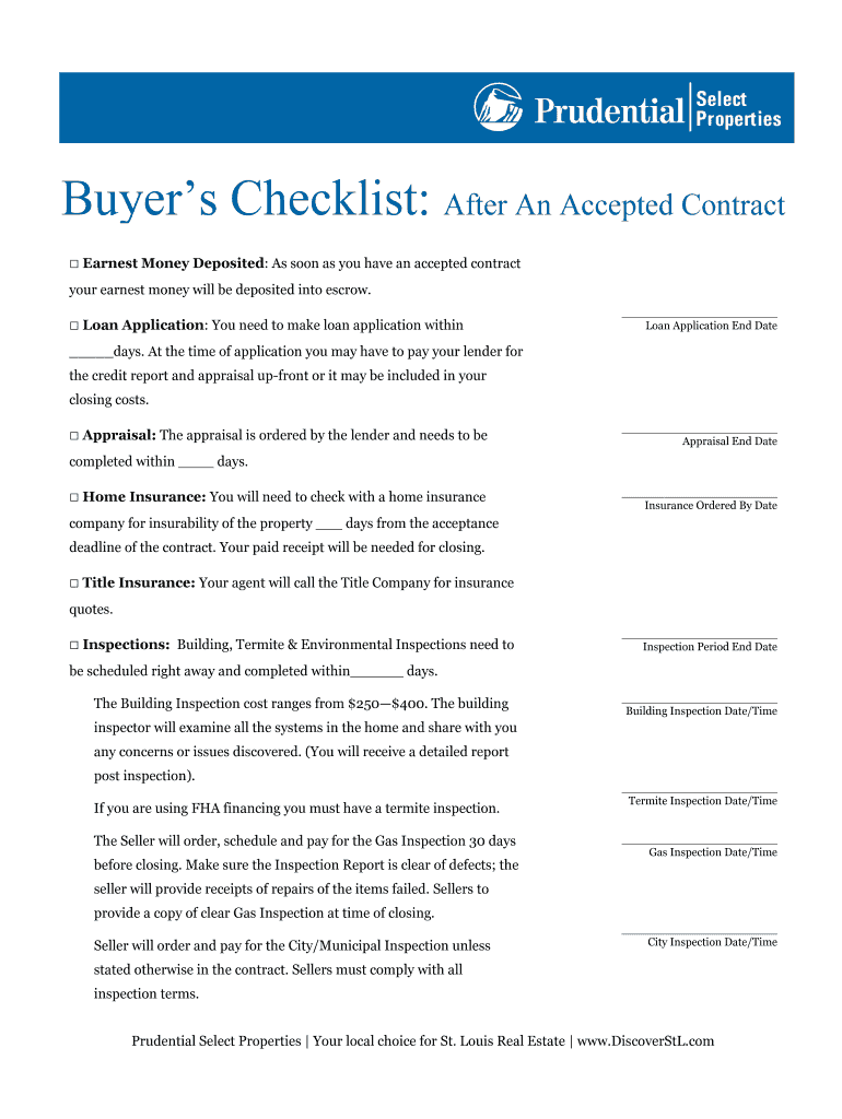 Buyers must report information such as completing a home inspection, securing financing, and obtaining homeowners insurance on the buyers checklist after an.
