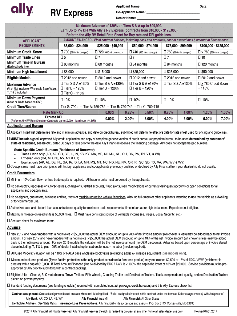Earn Up to 7% DFI With Ally's RV Express (contracts from $10,000 ×125,000)