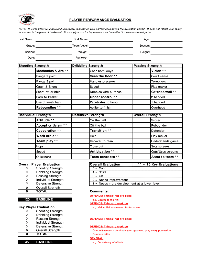 PLAYER PERFORMANCE EVALUATION NOTE: It is important to understand this review is based on your performance during the evaluation period. It does not reflect your ability to succeed in the game of
