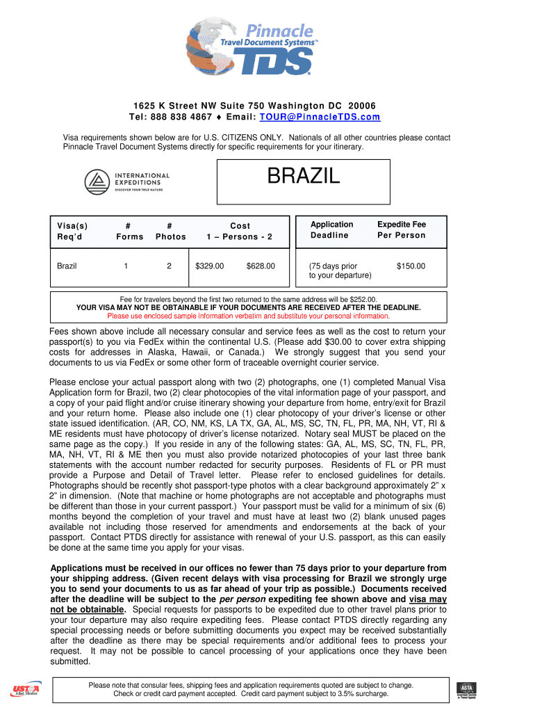 1625 K Street NW Suite 750 Washington DC 20006 Tel: 888 838 4867 Email: TOUR PinnacleTDS.com Visa requirements shown below are for U.S. CITIZENS ONLY. Nationals of all other countries please contact