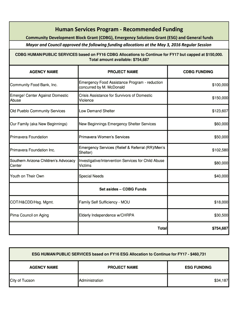 Get the free Human Services Program - Recommended Funding