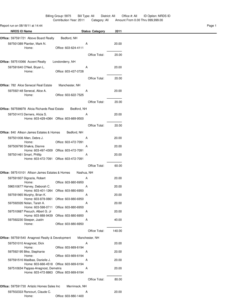 Report run on 08/18/11 at 14:44Page 1NRDS
