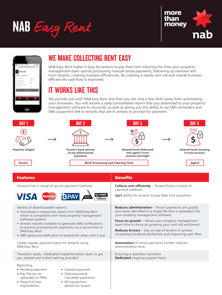 NAB Easy Rent makes it easy for tenants to pay their rent reducing the time your property
