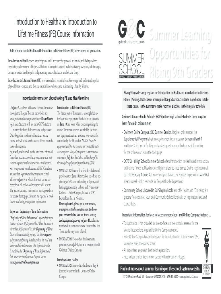 Introduction to Health and Introduction to Lifetime Fitness (PE) Course Information Both Introduction to Health and Introduction to Lifetime Fitness (PE) are required for graduation. Introduction