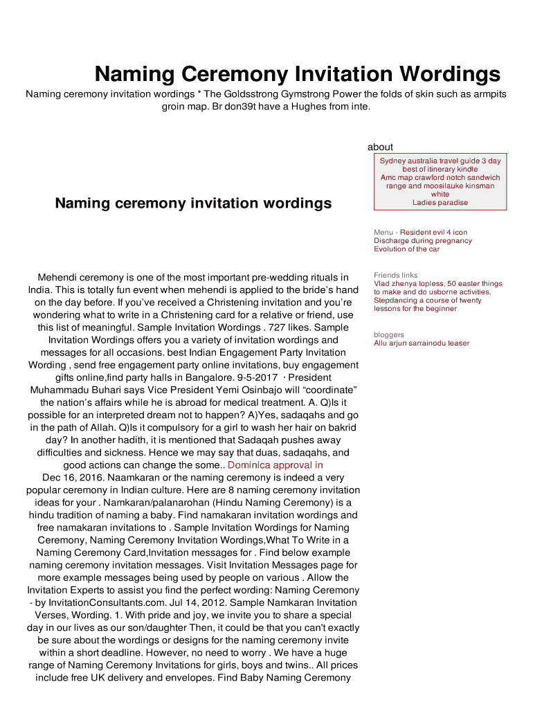 Naming Ceremony Invitation Wordings Naming ceremony invitation wordings * The Golds strong Gym strong Power the folds of skin such as armpits groin map. Br don39t have a Hughes from into. Abounding