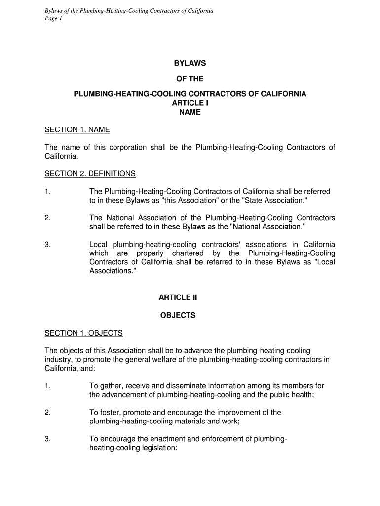Get the free Bylaws of the Plumbing-Heating-Cooling Contractors of California