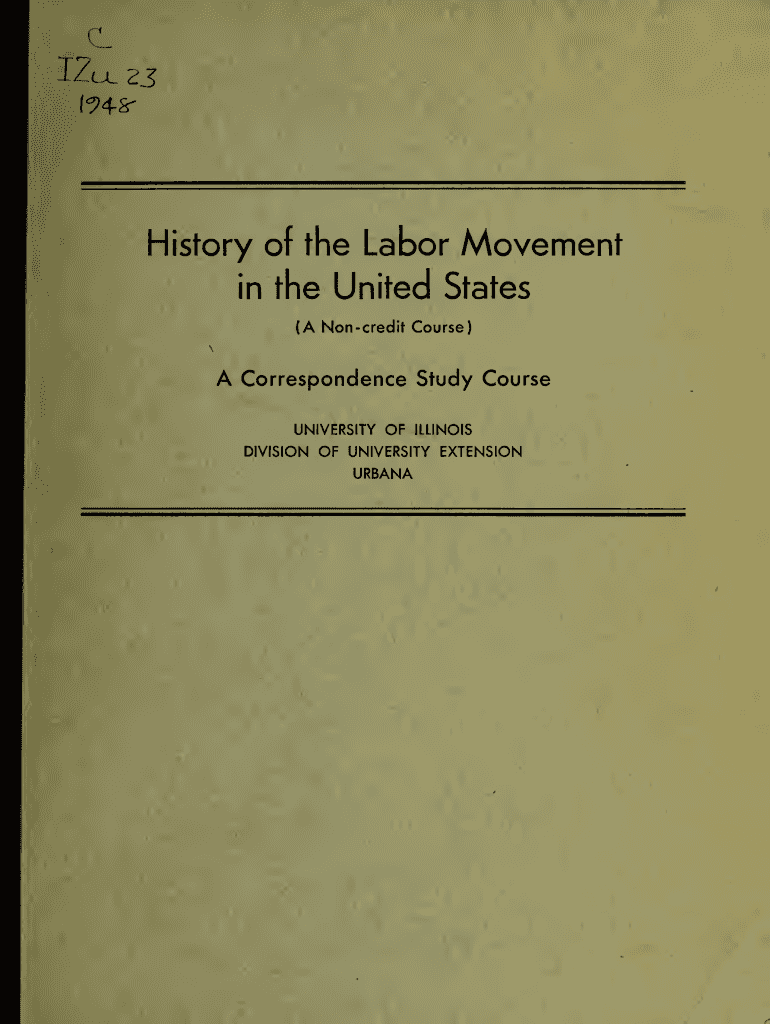 I94&History of the Labor inMovementthe United States A Noncredit Course)Correspondence Study Course UNIVERSITY OF ILLINOIS DIVISION UNIVERSITY EXTENSION URBANADivision of University Extension University