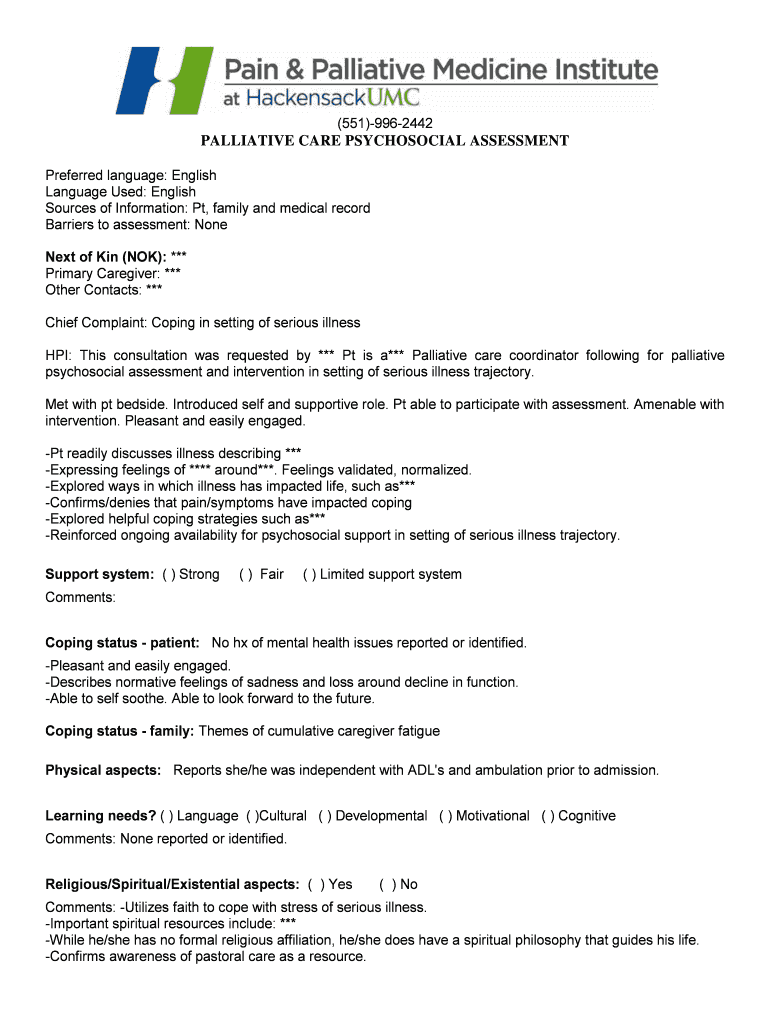 (551)9962442PALLIATIVE CARE PSYCHOSOCIAL ASSESSMENT
