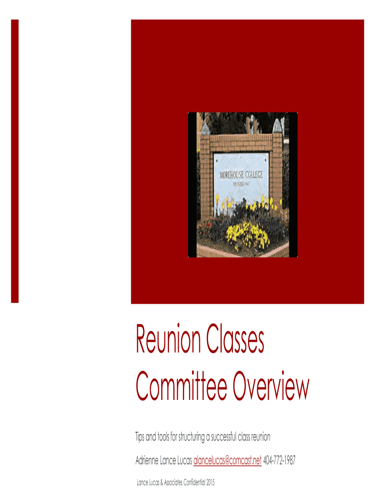 Reunion Classes Committee Overview Tips and tools for structuring a successful class reunion Adrienne Lance Lucas alancelucas Comcast.net 4047721987 Lance Lucas & Associates Confidential 2015Agenda