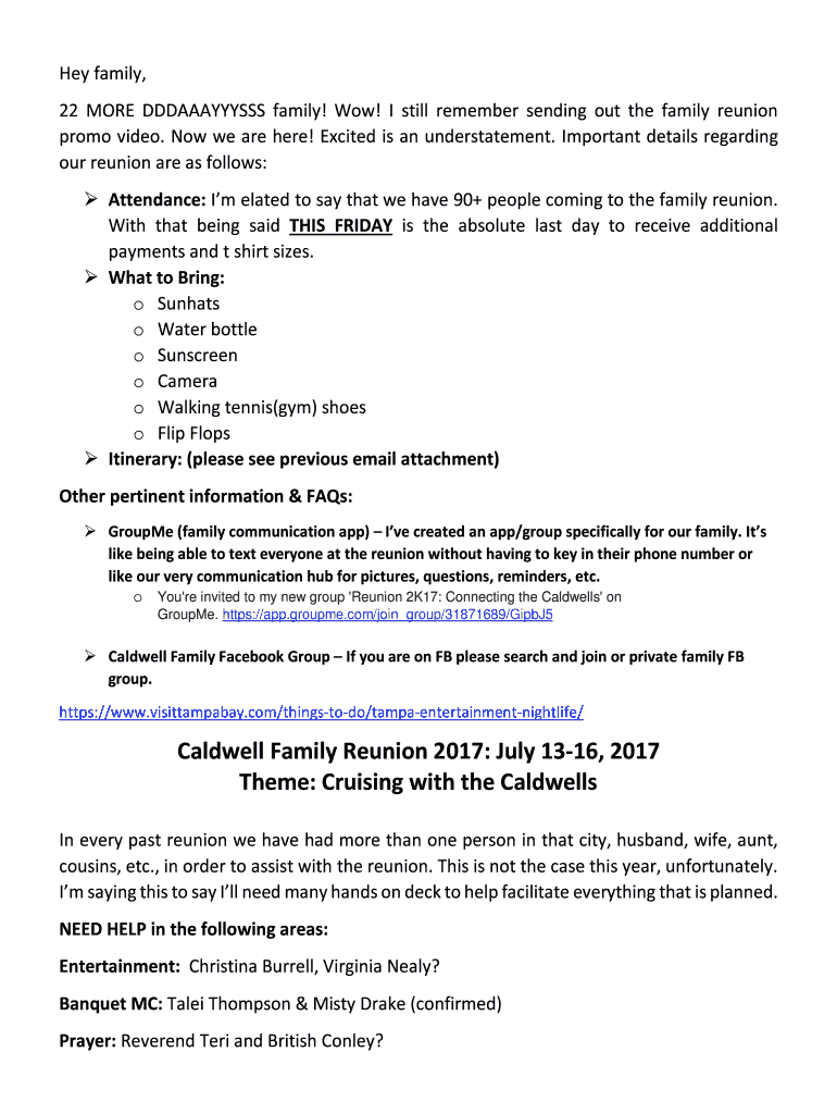 Hey family, 22 MORE DDDAAAYYYSSS family! Wow! I still remember sending out the family reunion promo video. Now we are here! Excited is an understatement. Important details regarding our reunion are