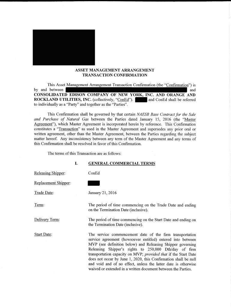 ASSET MANAGEMENT ARRANGEMENT TRANSACTION CONFIRMATION This Asset 1s by and between and CONSOLIDATED EDISON COMPANY OF NEW YORK, INC. AND ORANGE AND ROCKLAND UTILITIES, INC. (collectively, “Coned