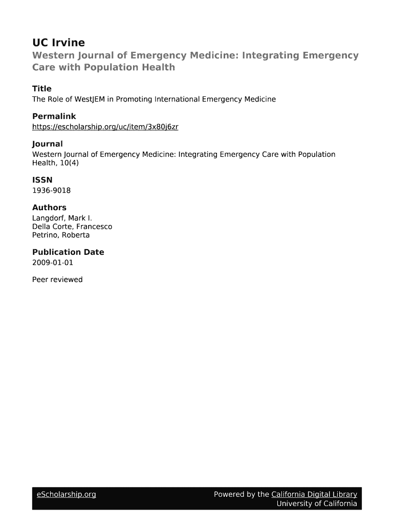 Get the free The Role of WestJEM in Promoting International Emergency Medicine