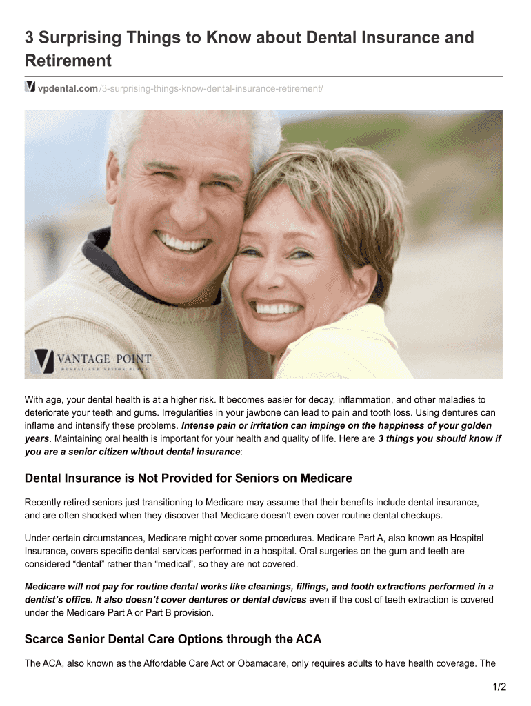 vpdental.com /3surprisingthingsknowdentalinsuranceretirement/With age, your dental health is at a higher risk. It becomes easier for