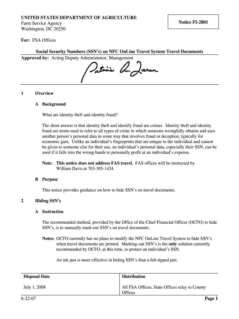 Washington, DC 20250Notice FI2801For: FSA Offices