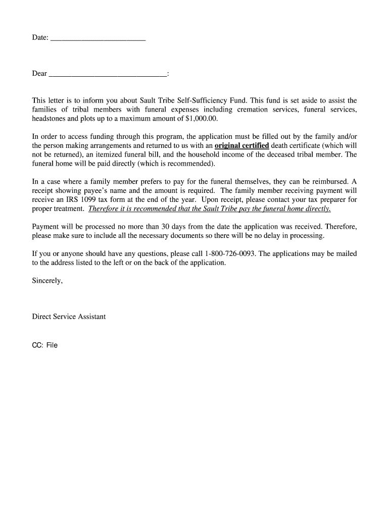 Get the free This letter is to inform you about Sault Tribe Self-Sufficiency Fund
