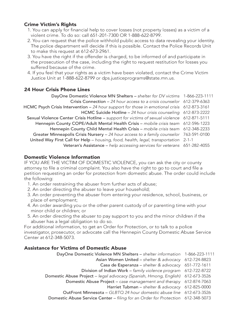 violent crime. To do so: call 6512017300 OR 18886228799.