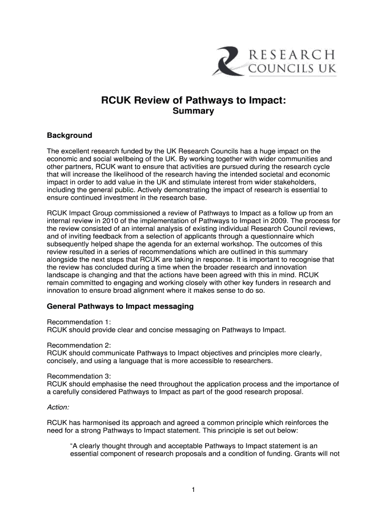 Research organizations receiving funding from RCUK are required to file the review of pathways.