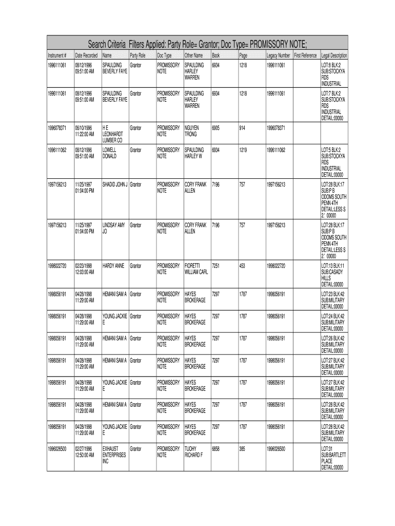Get the free Search Criteria Filters Applied: Party Role Grantor; Doc Type PROMISSORY NOTE;