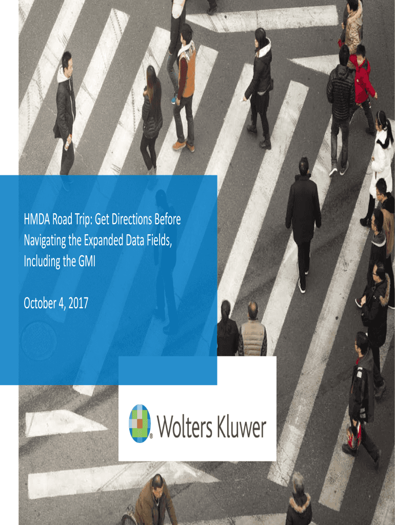 HMD Road Trip: Get Directions Before Navigating the Expanded Data Fields, Including the GMI October 4, 2017Wolters Lower HMD Webinar Series 1. June 29, 2017HMDA: The Ultimate Road Trip Pretoria Checkup