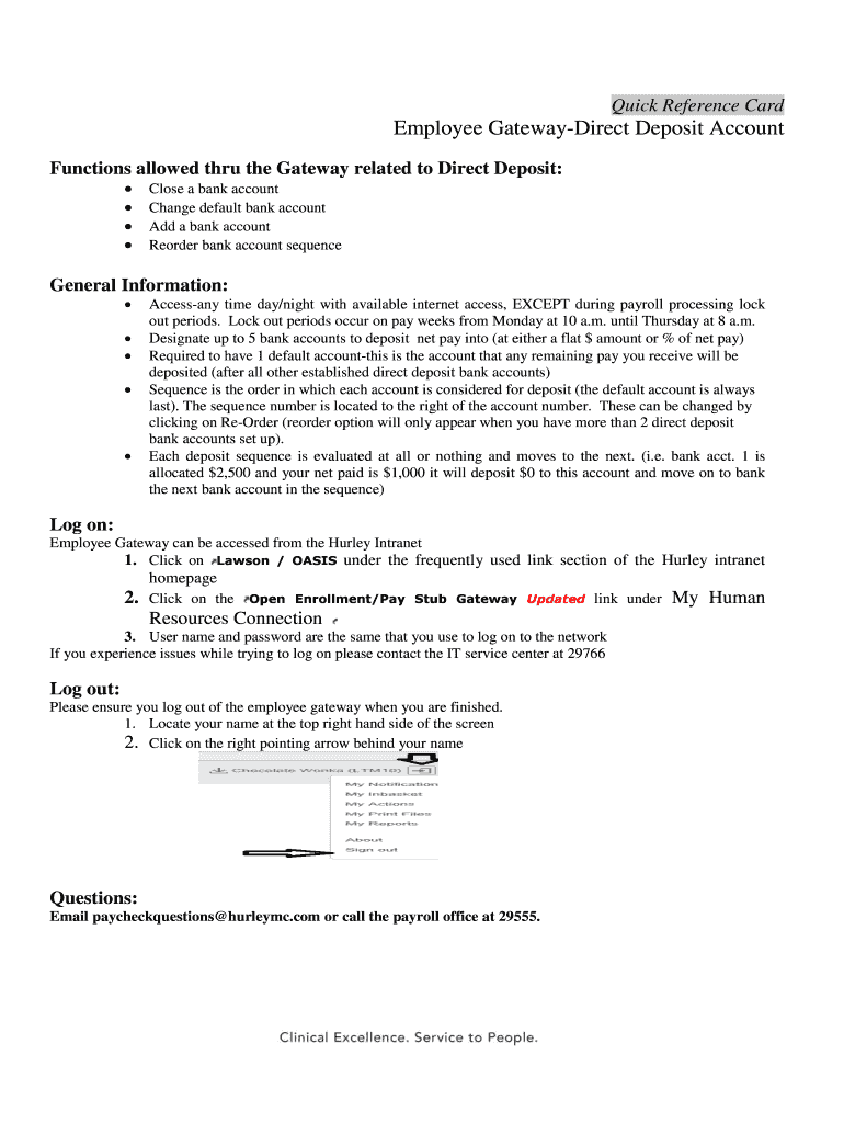 Quick Reference CardEmployee GatewayDirect Deposit Account Functions allowed through the Gateway related to Direct Deposit: Close a bank account Change default bank account Add a bank account Reorder
