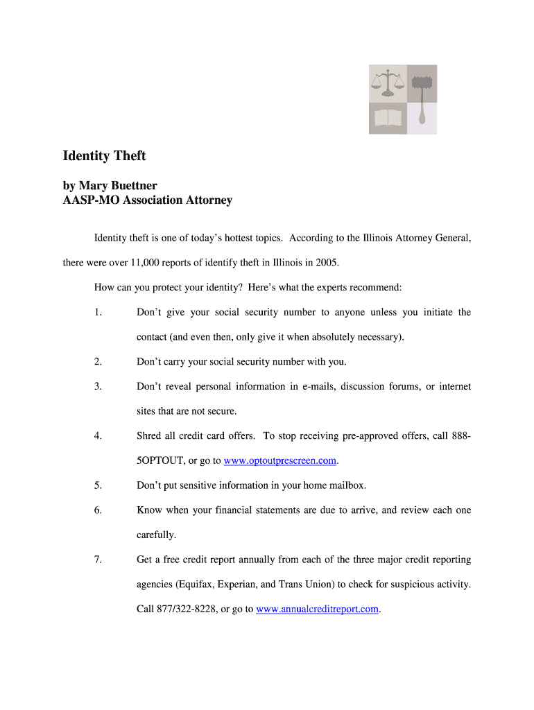 Identity theft is one of today's the hottest topics. According to the Illinois Attorney General,