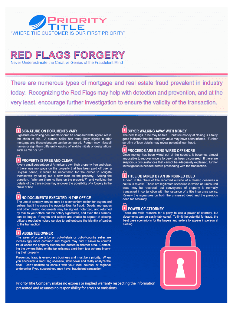 WHERE THE CUSTOMER IS OUR FIRST PRIORITY RED FLAGS FORGERY