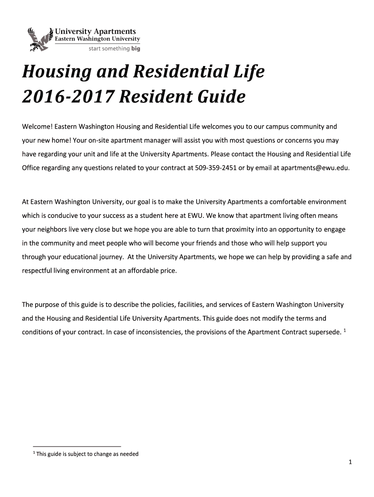 Welcome! Eastern Washington Housing and Residential Life welcomes you to our campus community and