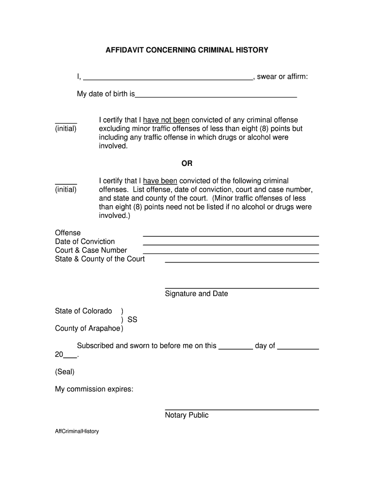Affidavit concerning criminal history is a document that discloses an individual's criminal background.
