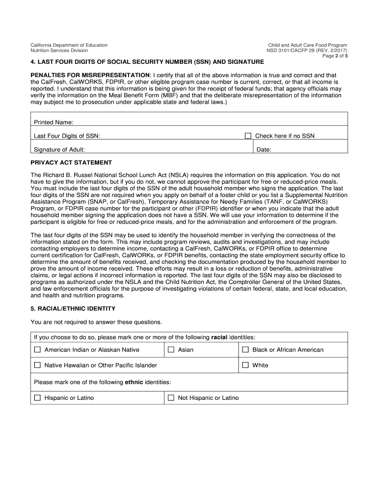 Sponsors of child and adult care centers participating in the CACFP are required to file NSD 3101CACFP 29 Rev form.