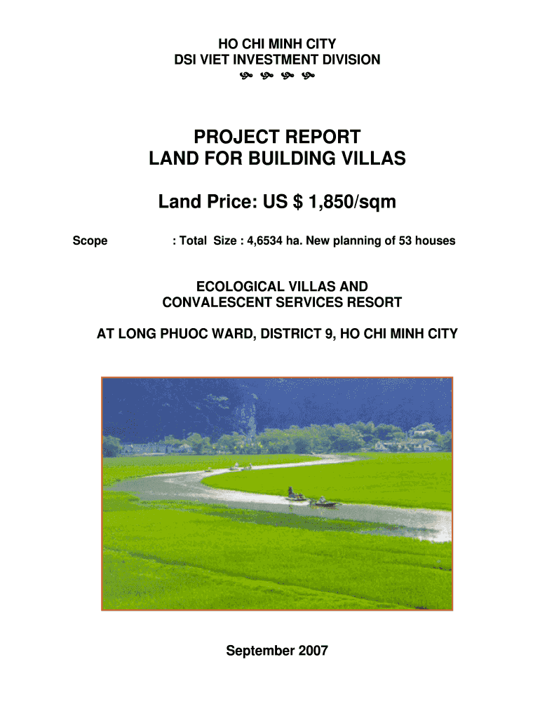 HO CHI MINH CITY DSI VIEW INVESTMENT DIVISION PROJECT REPORT LAND FOR BUILDING VILLAS Land Price: US $1,850/sum Scope: Total Size : 4,6534 ha. New planning of 53 housesECOLOGICAL VILLAS AND CONVALESCENT