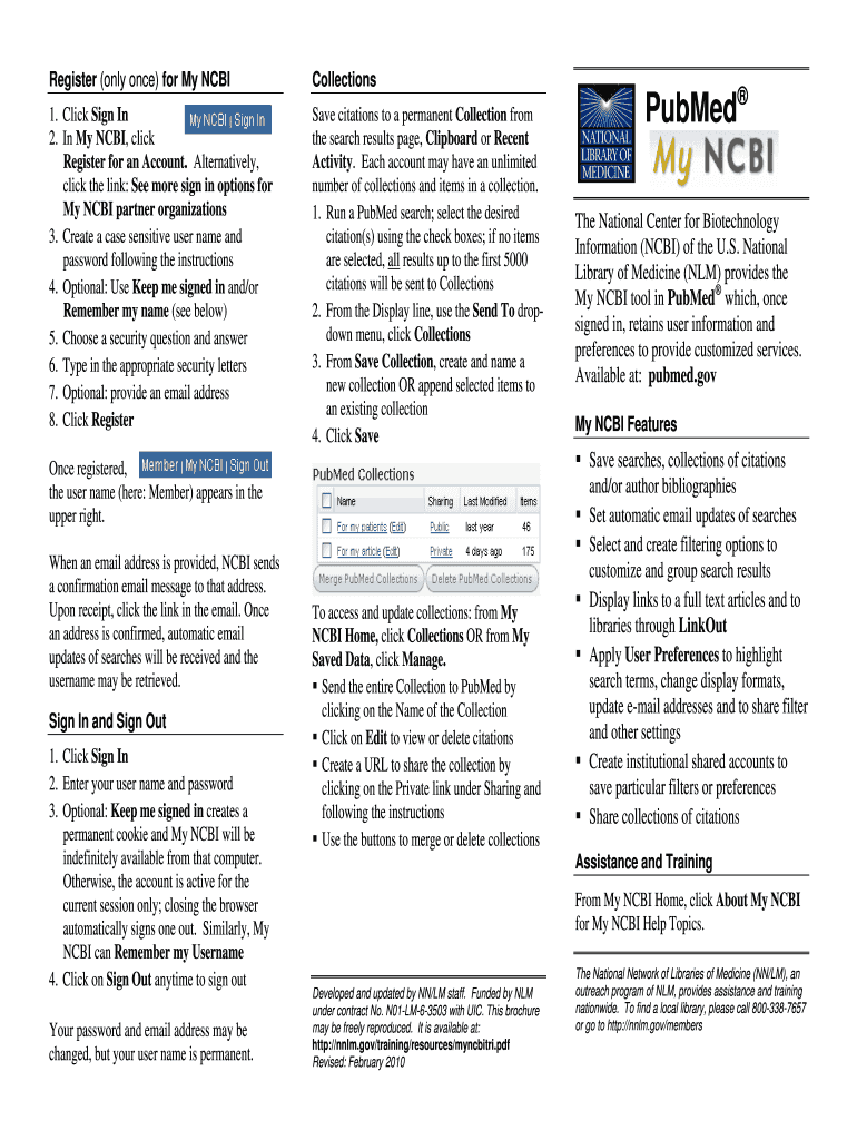 Register (only once) for My NCBICollections1. Click Sign In