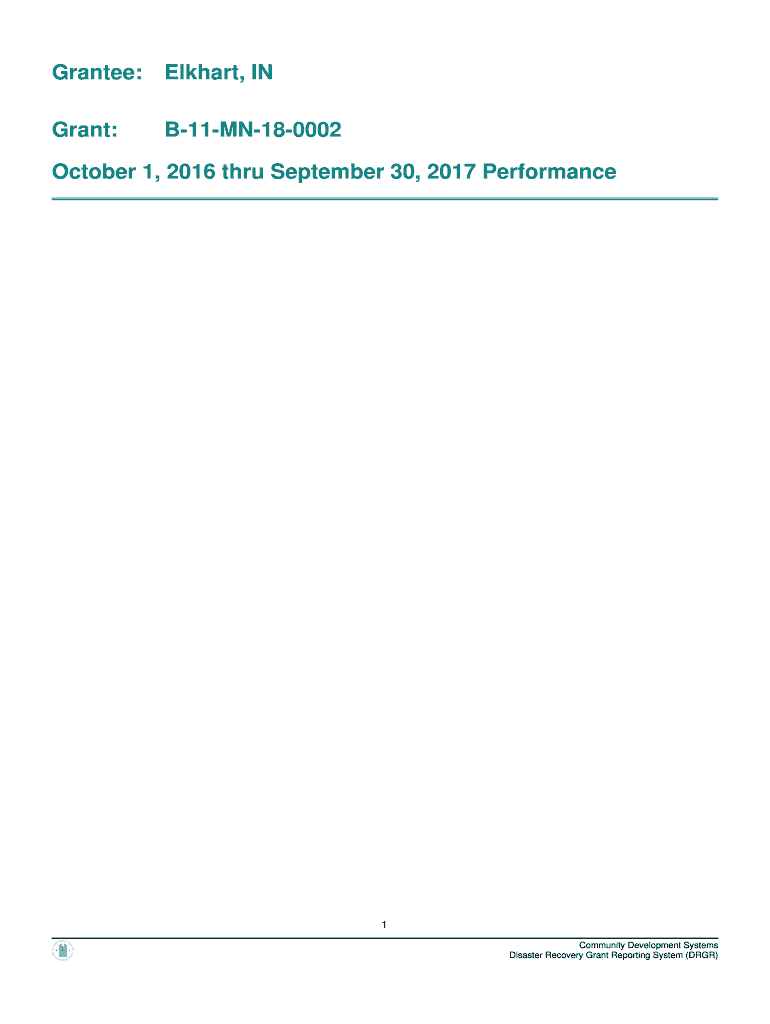 Grantee:Elkhart, IN Grant:B11MN180002October 1, 2016 through September 30, 2017 Performance1