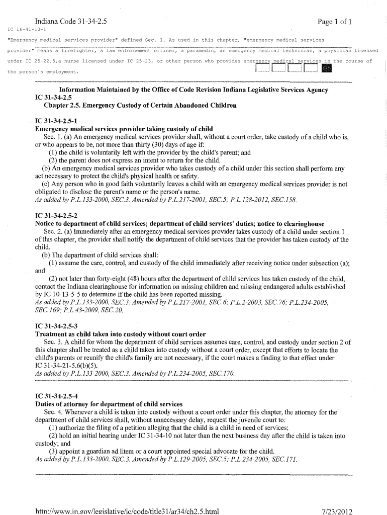 Get the free Indiana Code 31-34-2
