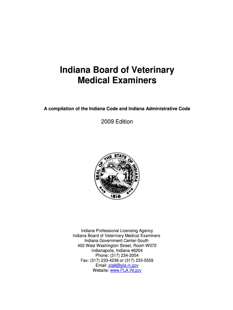 A compilation of the Indiana Code and Indiana Administrative Code2009 Edition Indiana Professional Licensing Agency