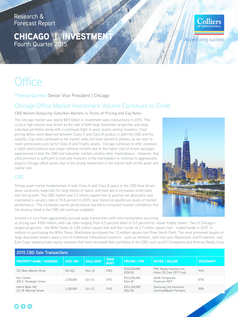 Thomas Gorman Senior Vice President | Chicago Office Market Investment Volume Continues to Climb