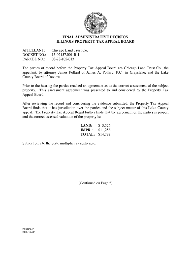 ILLINOIS PROPERTY TAX APPEAL BOARD