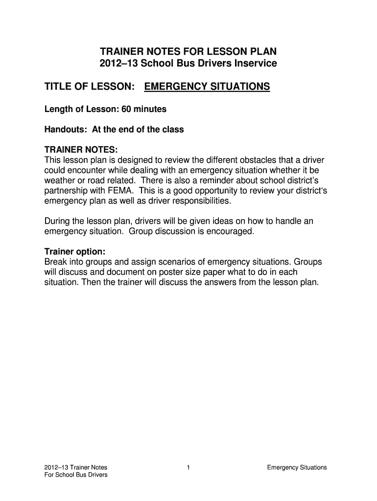 Get the free 201213 School Bus Drivers Inservice