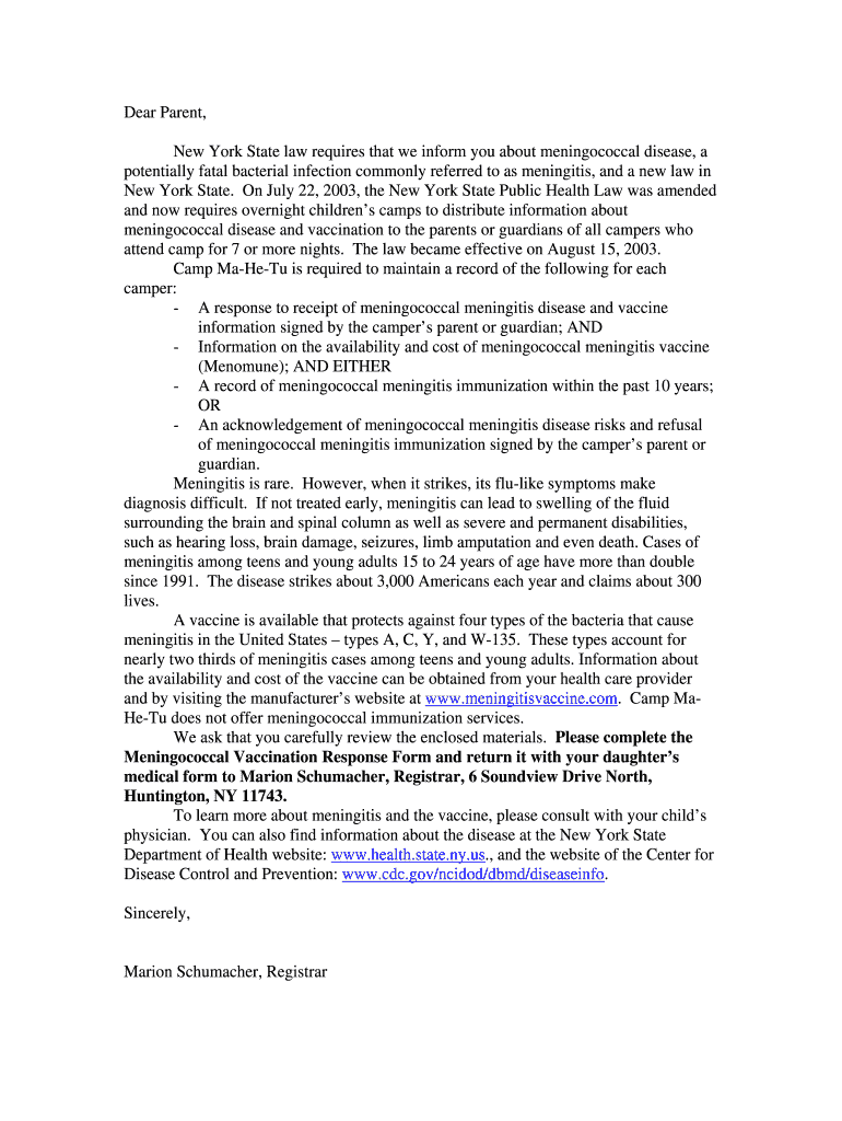 Get the free New York State law requires that we inform you about meningococcal disease, a