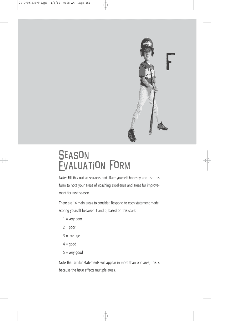 21 0789733579 AppF4/6/059:08 Rampage 261FSeason Evaluation Form Note: Fill this out at seasons end. Rate yourself honestly and use this form to note your areas of coaching excellence and areas for
