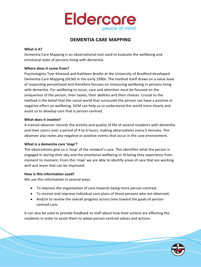 Dementia Care Mapping is an observational tool used to evaluate the wellbeing and