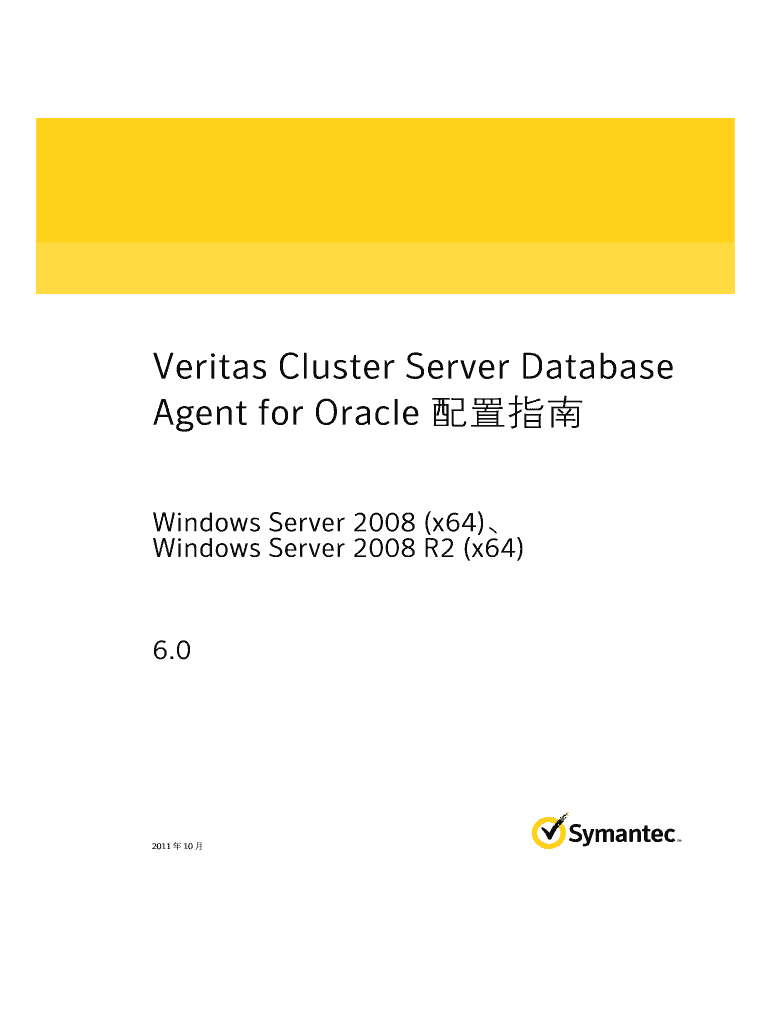 Merits Cluster Server Database Agent for Oracle Windows Server 2008 (x64) Windows Server 2008 R2 (x64)6.02011 10 Merits Cluster Server Database Agents for Oracle 6.0.0 6.0.0.0 Copyright 2011 Symantec