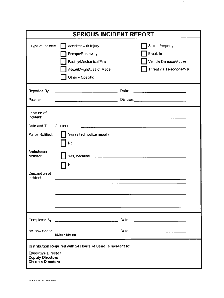 SERIOUS INCIDENT REPORT Stolen PropertyType of Incident Accident with Injury Escape/Runaway BreakInFacility/Mechanical/Fire Vehicle Damage/AbuseAssault/Diffuse of Mace Threat via Telephone/Another