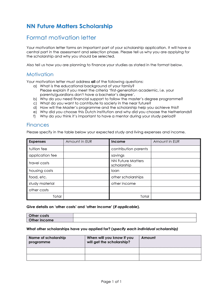 Your motivation letter forms an important part of your scholarship application. It will have a