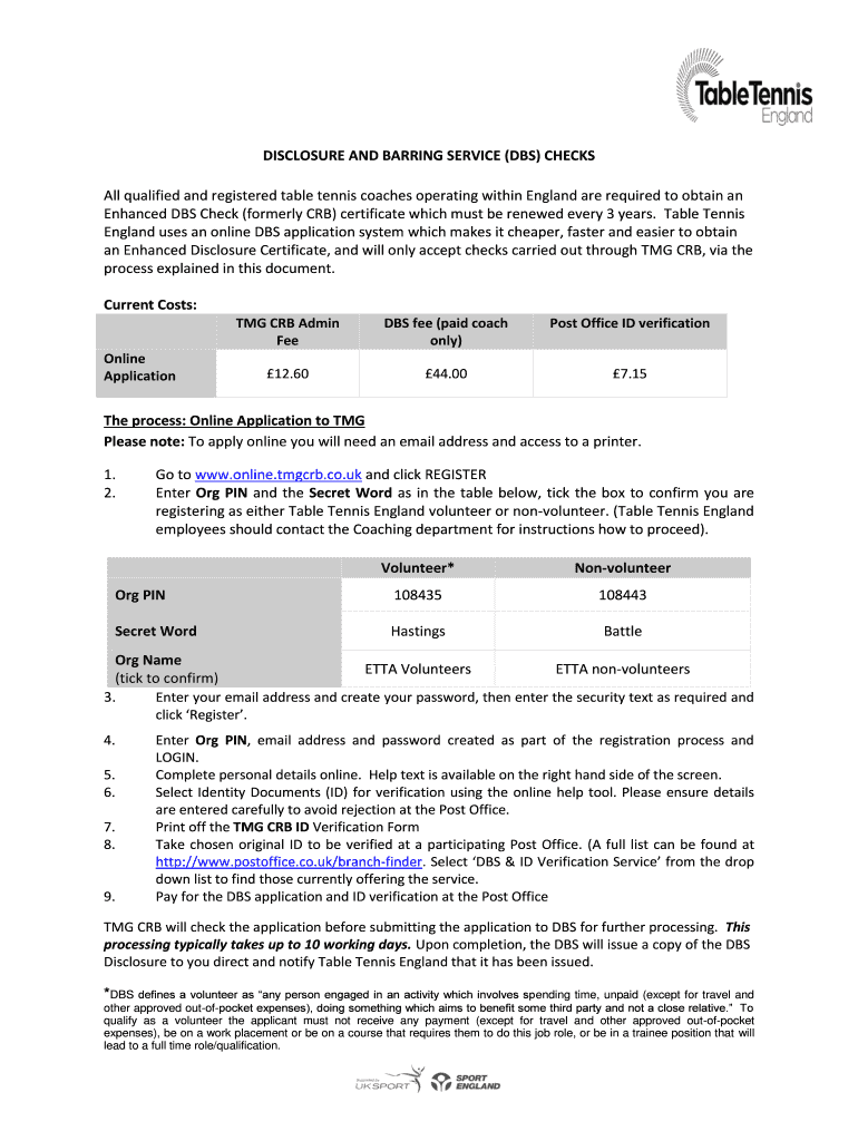 Get the free DISCLOSURE AND BARRING SERVICE (DBS) CHECKS