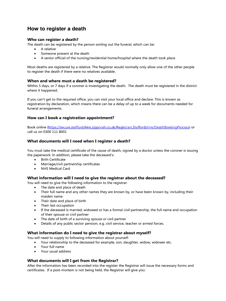 Get the free How to register a death