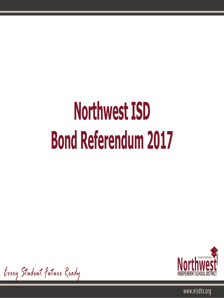 Northwest ISD Bond Referendum 2017Dr. Ryder Warren, Superintendent February 16, 2017Thank You!NORTHWEST ISD VISION The best and most sought after school district where every student is future ready: