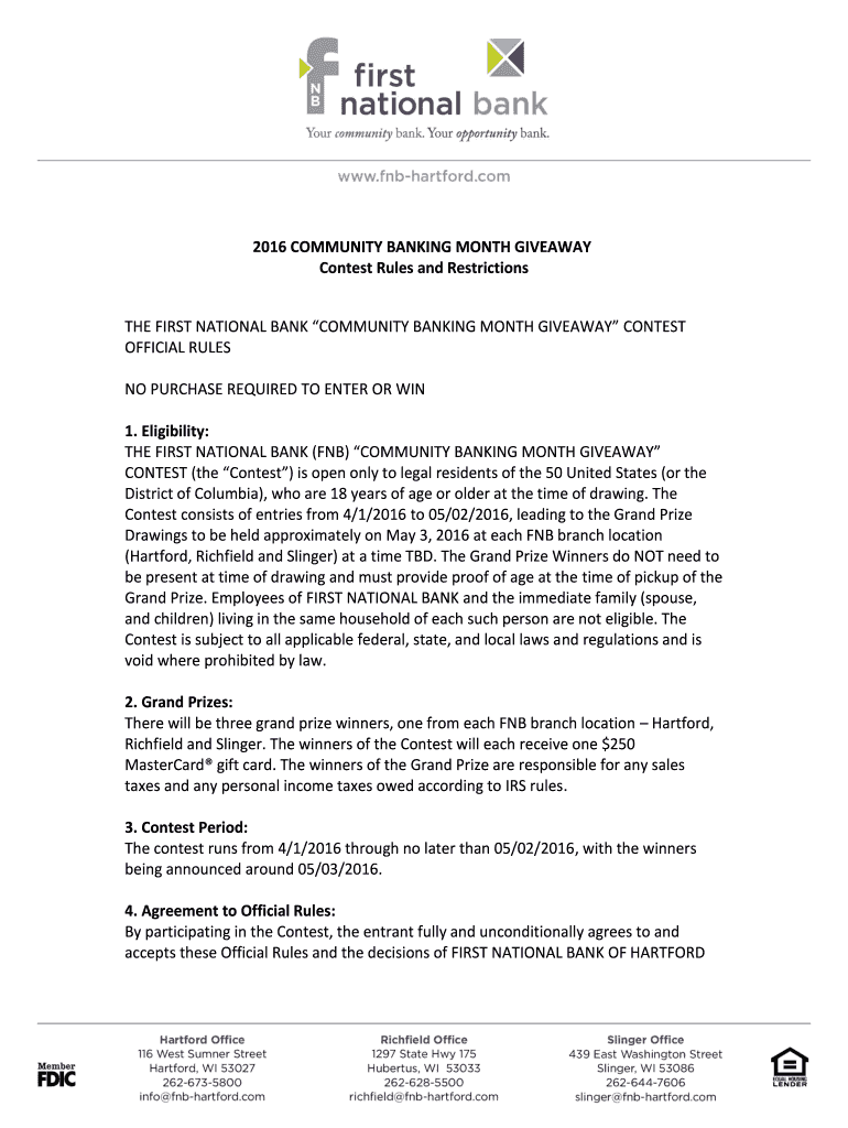 THE FIRST NATIONAL BANK COMMUNITY BANKING MONTH GIVEAWAY CONTEST