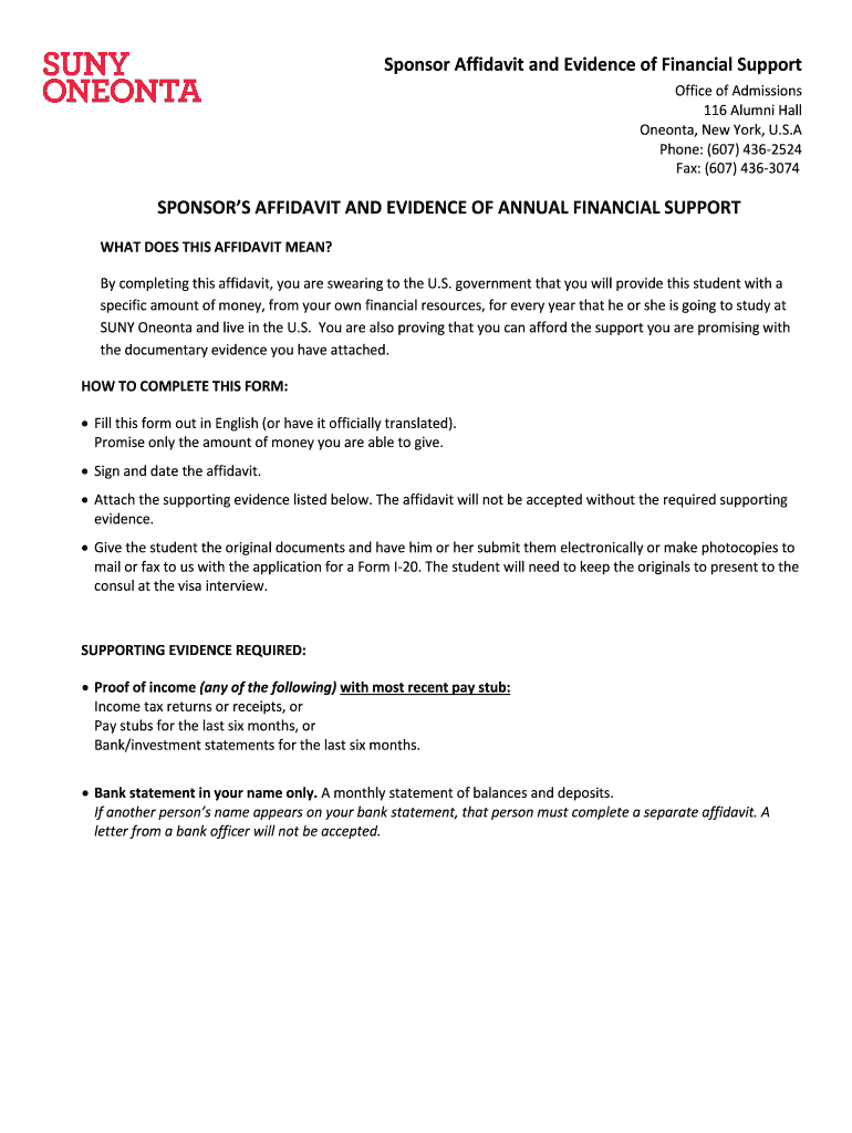 The purpose of sponsor affidavit and evidence is to ensure that the applicant will not become a public charge and that they will have adequate financial support during their stay.