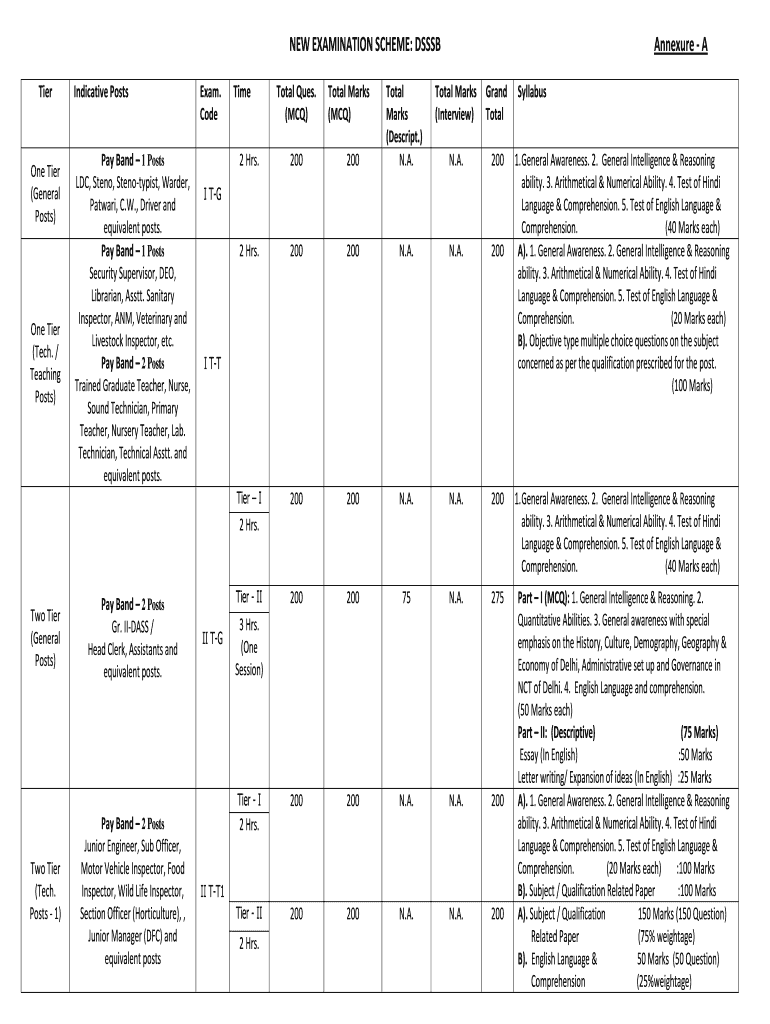 NEW EXAMINATION SCHEME: DS SSB Throne Tier (General Posts)One Tier (Tech. / Teaching Posts)Indicative Posts Band 1 Posts LDC, Steno, Steno typist, Warder, Atari, C.W., Driver and equivalent posts.