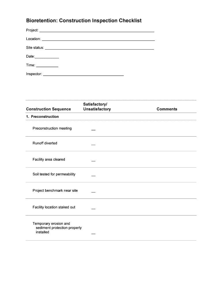 Fill out your bioretention construction inspection checklist online with pdfFiller!